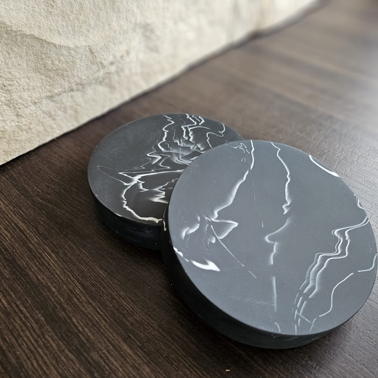 Jabonera ceramica simil marmol negro, 12 cm de diametro.