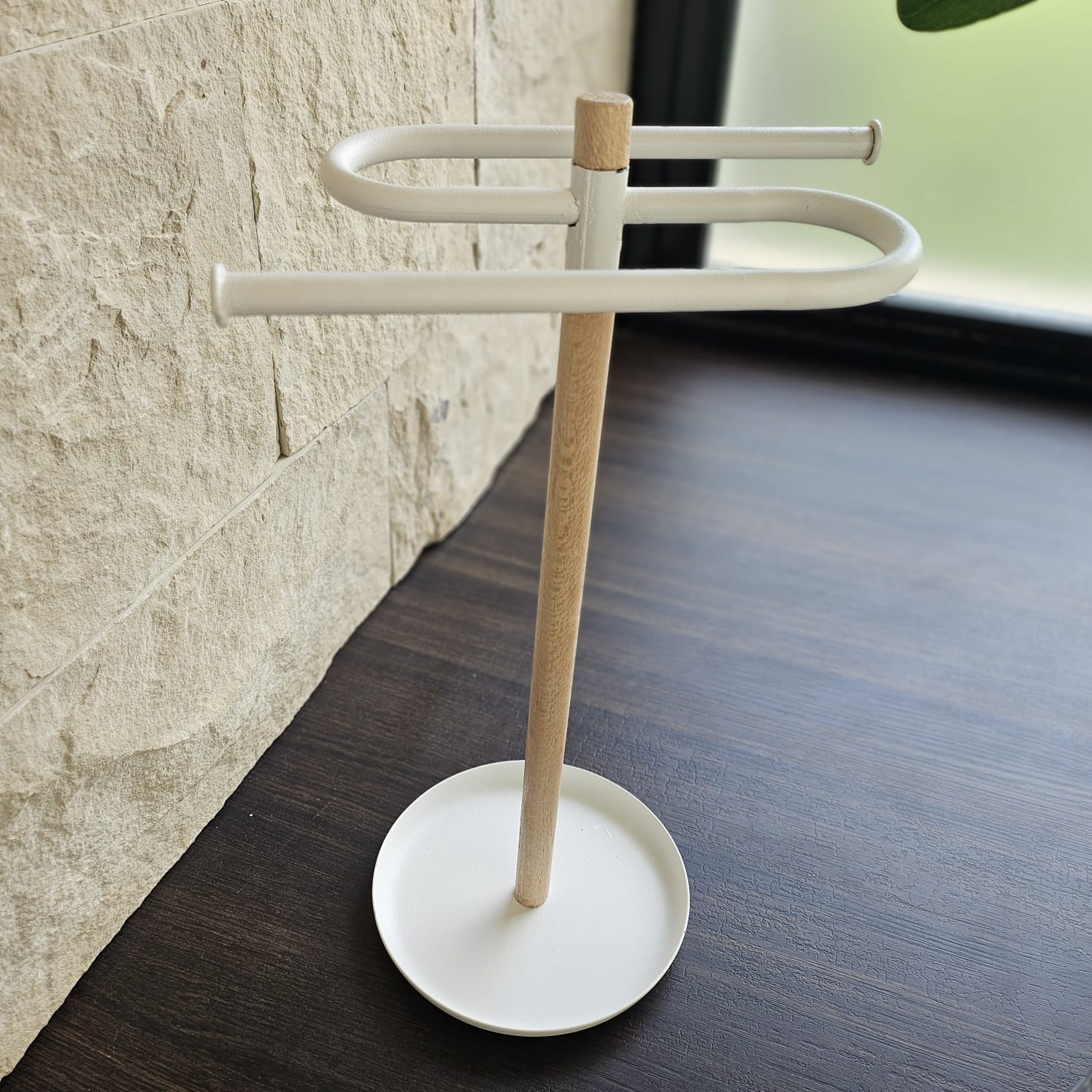 Toallero doble blanco, de chapa y madera, medida aprox 32 cm de alto.